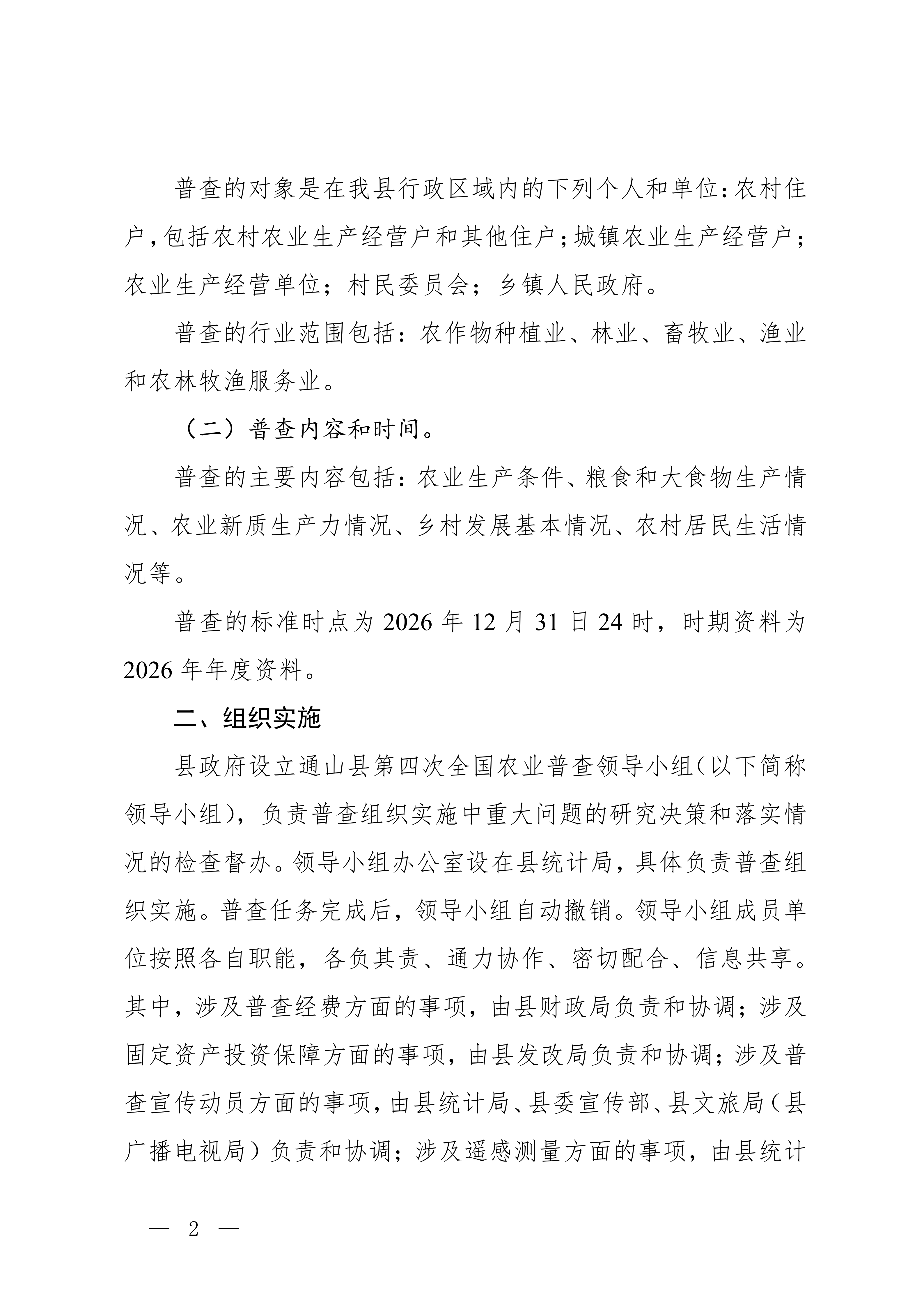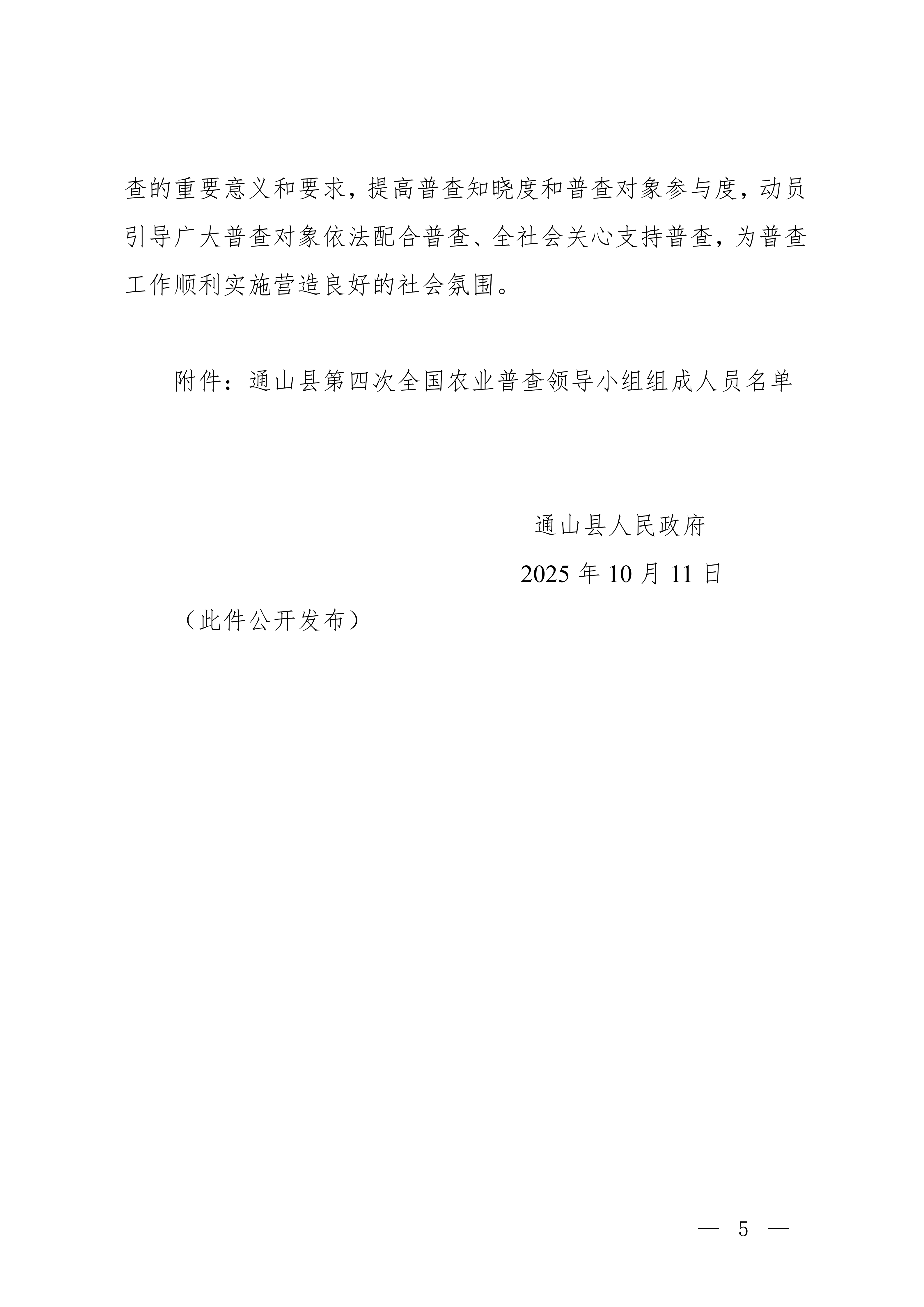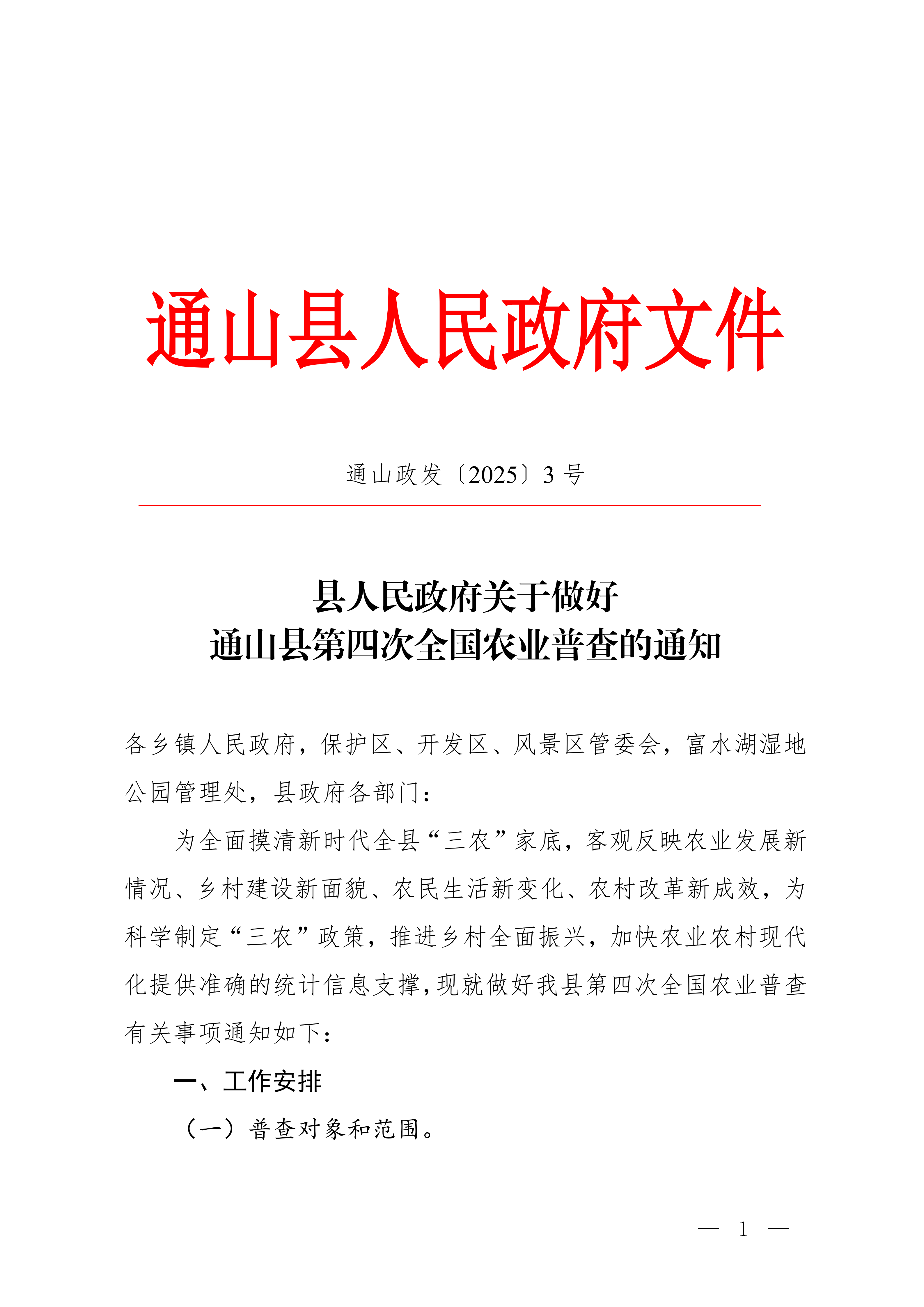 县人民政府关于做好通山县第四次全国农业普查的通知