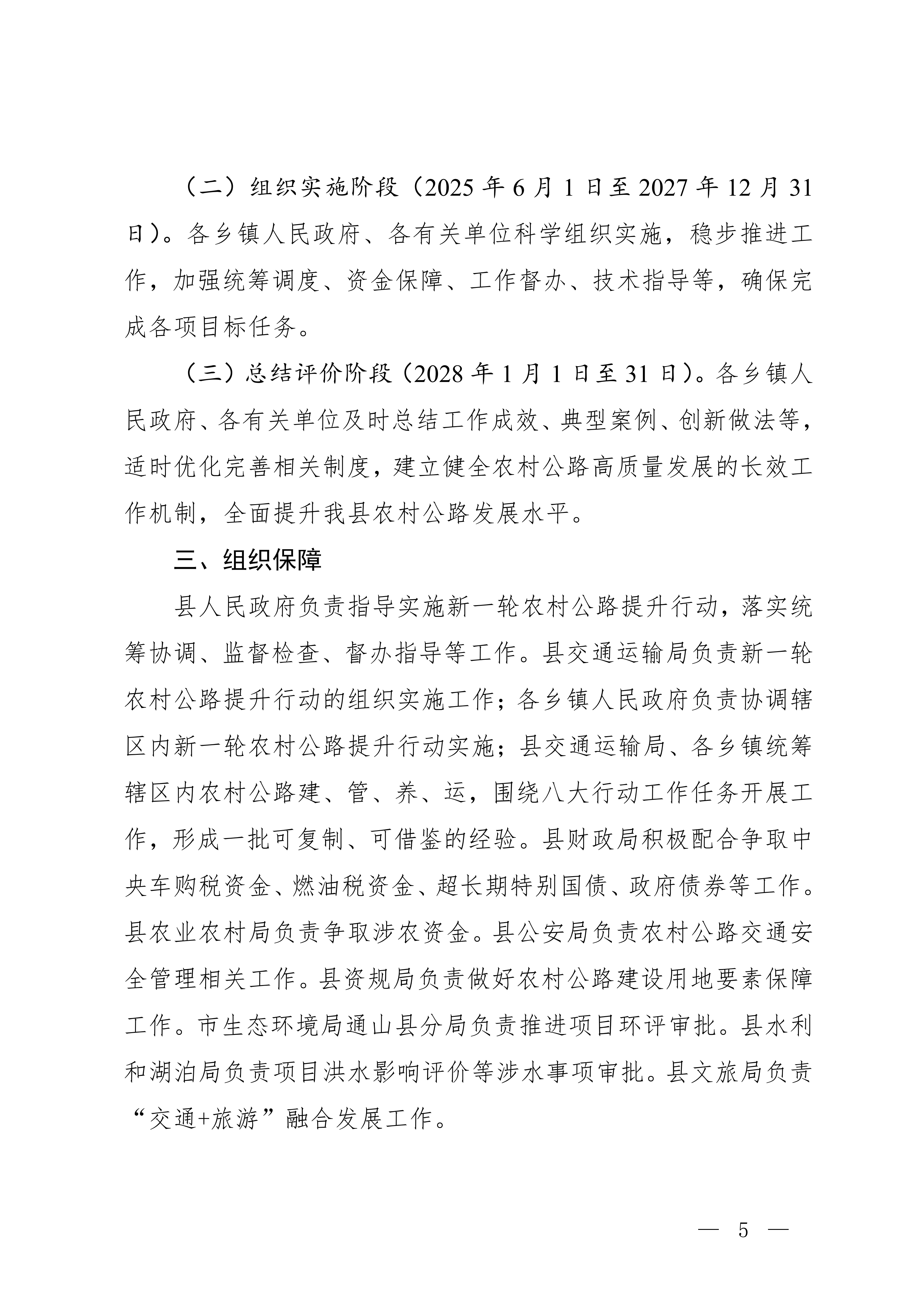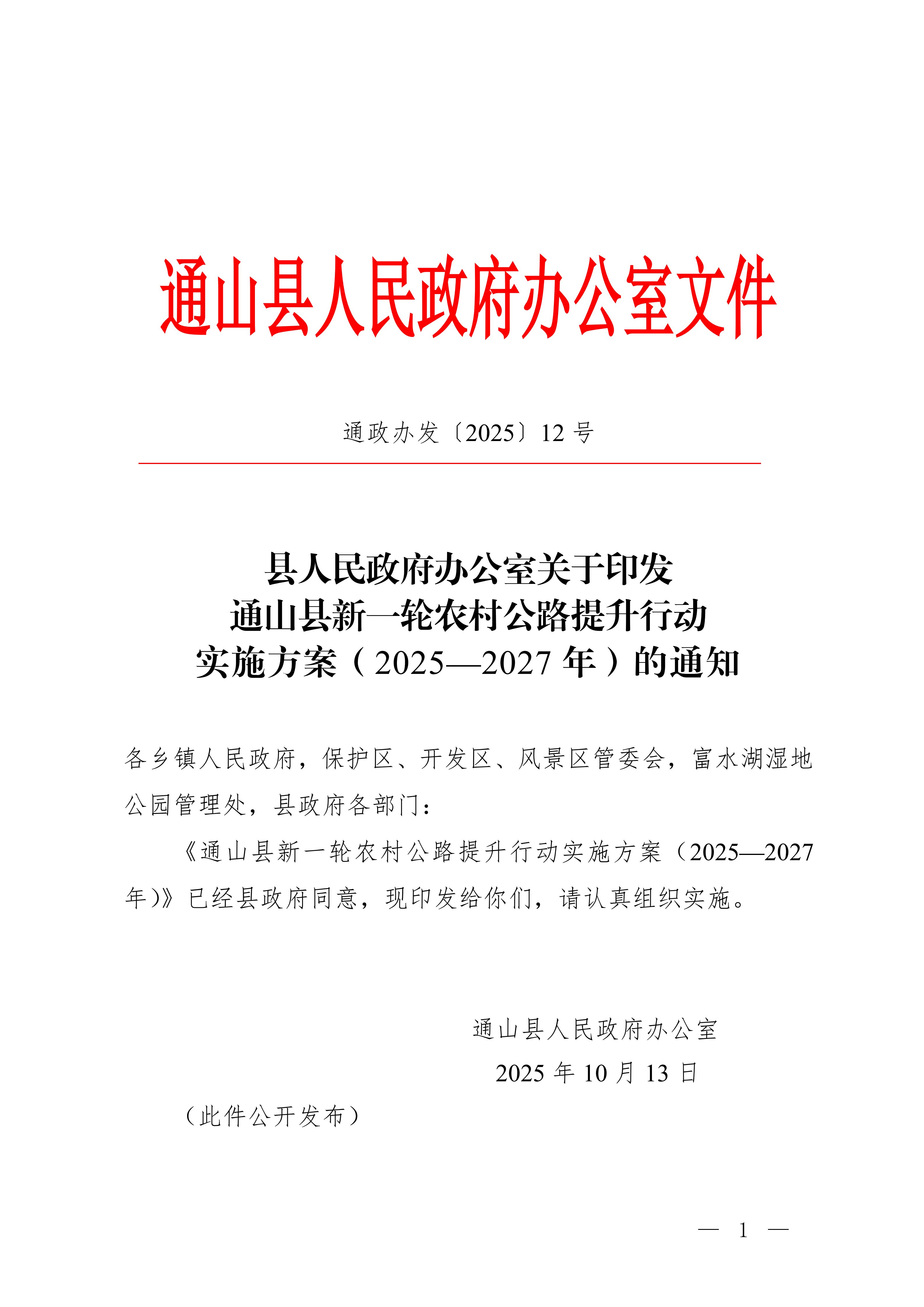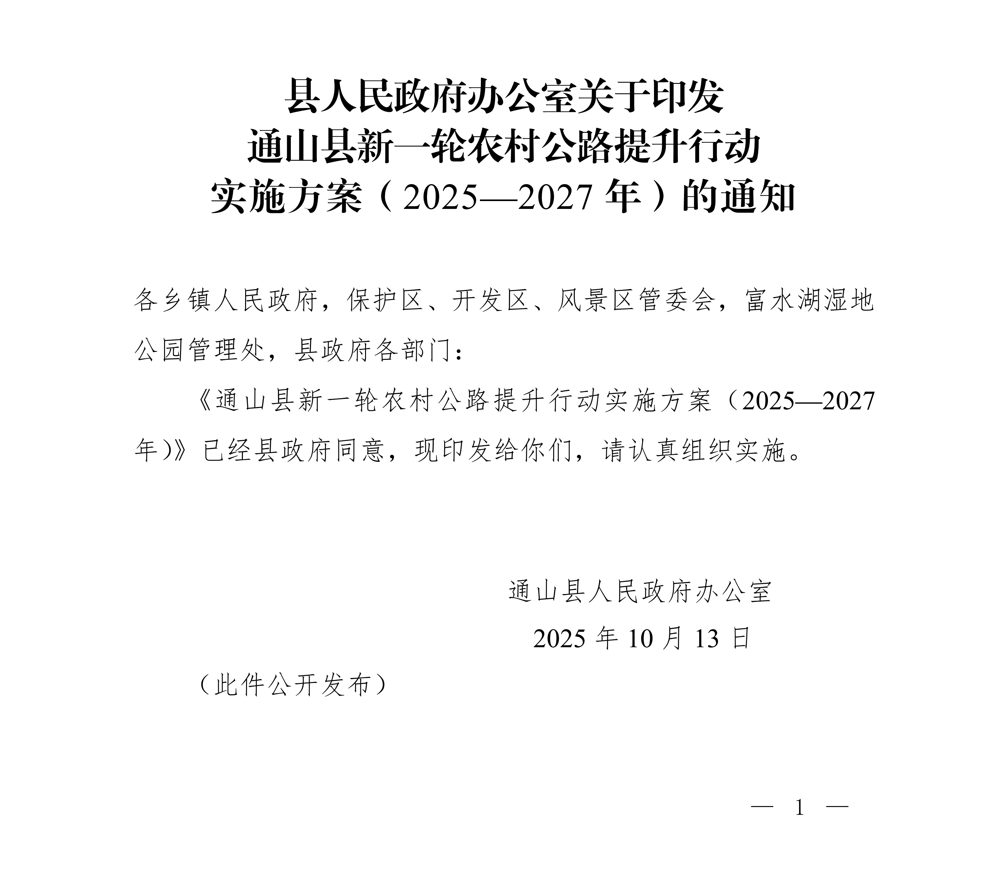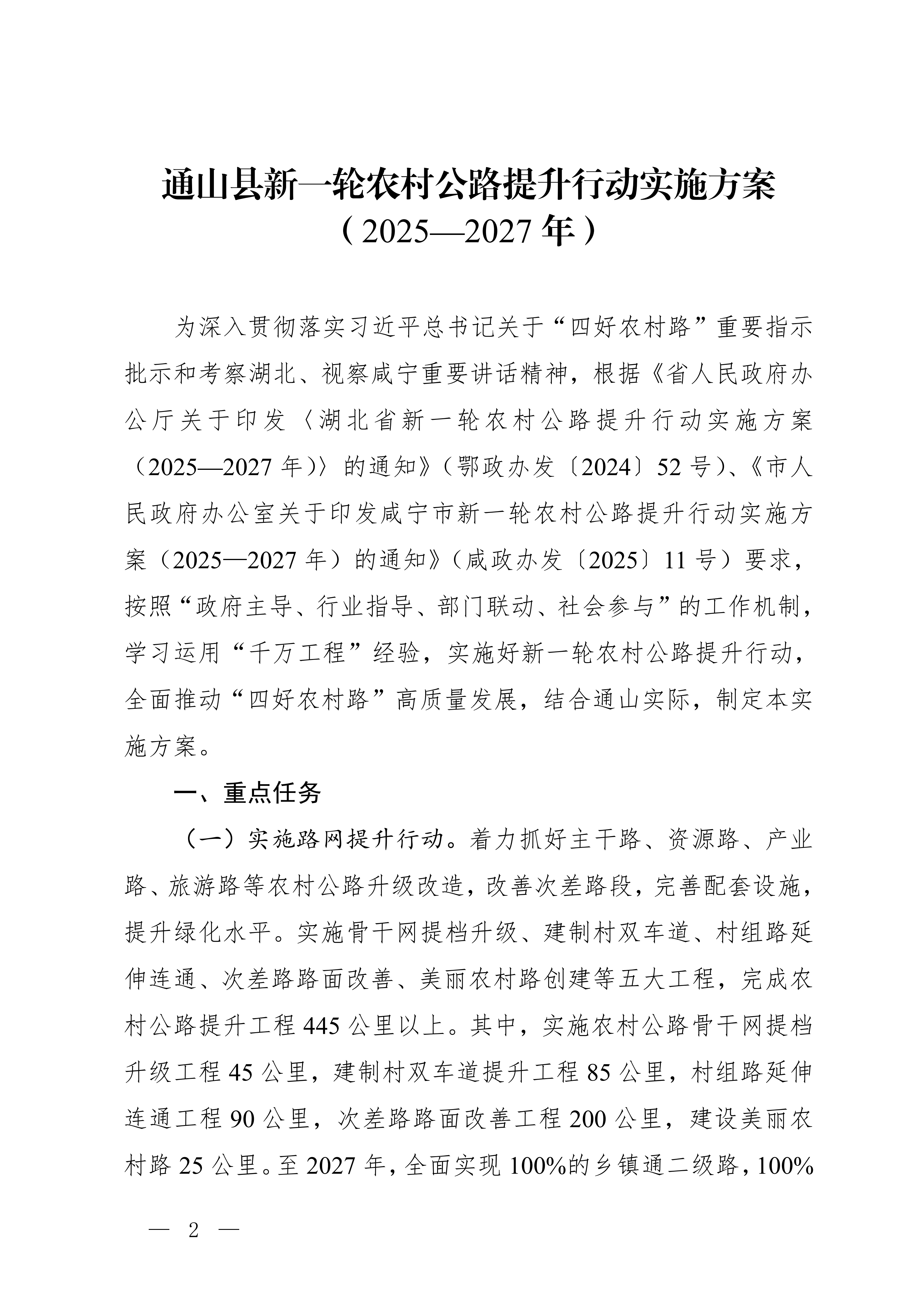 县人民政府办公室关于印发通山县新一轮农村公路提升行动实施方案(2025—2027 年)的通知